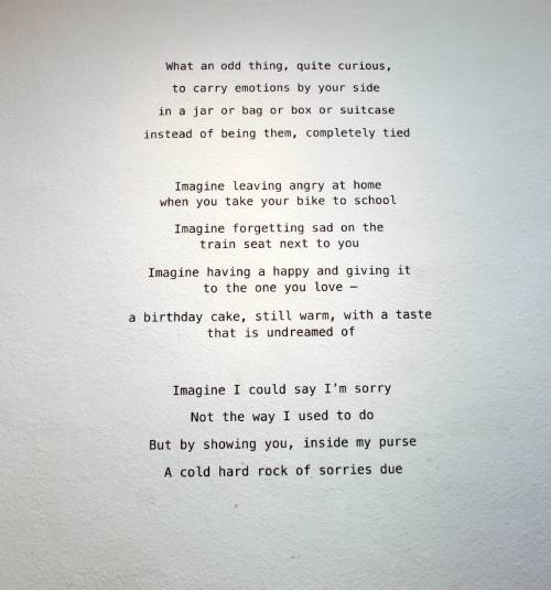 This poem was chosen to be part of the contemporary art exhibition We Are Not What We Are, organised by students of the MA Arts and Heritage at Maastricht University. The words could be found on the wall of the Rooms Art Space.